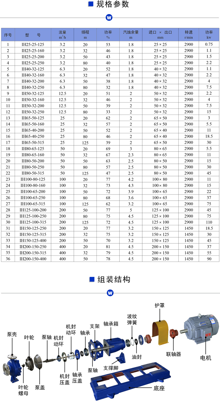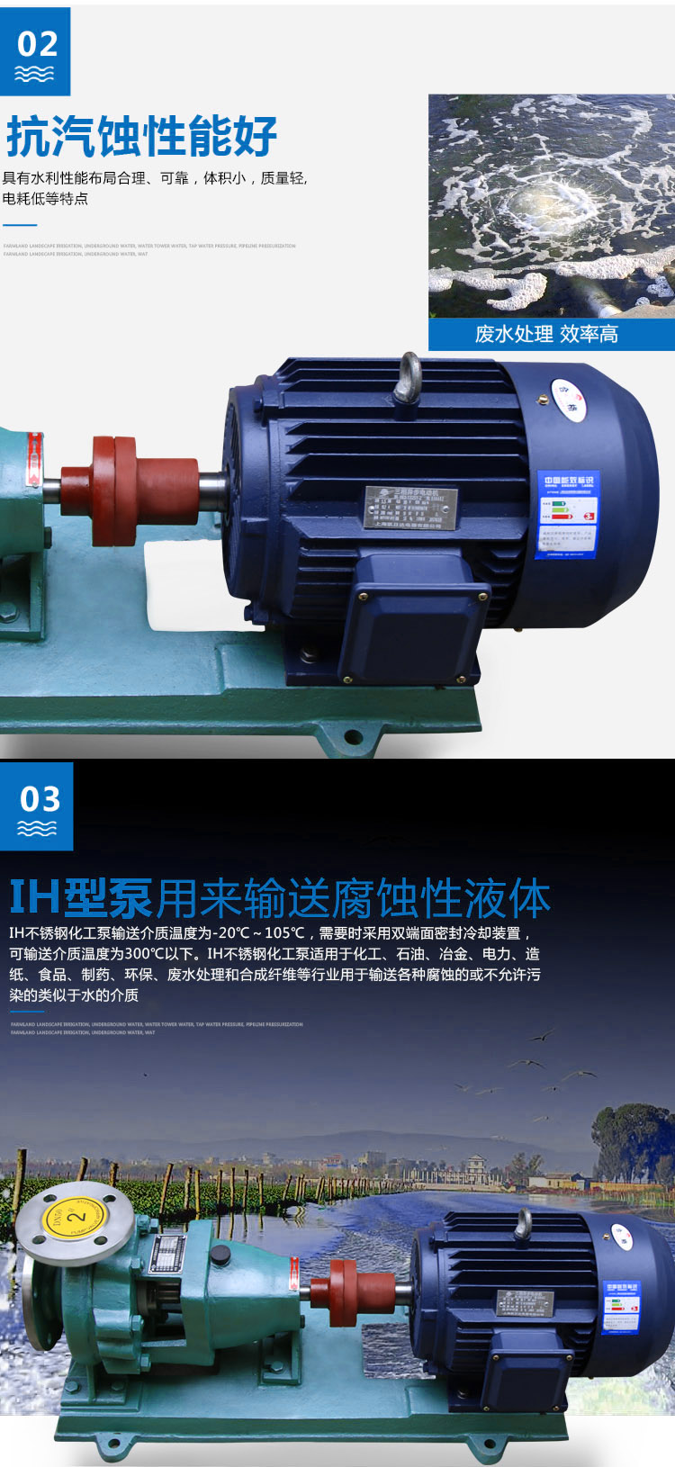IH型化工泵是單級單吸懸臂式離心泵,其標記額定性能點和尺寸等效采用國際標準ISO2858-1975(E),是一種用以取代F型耐腐蝕泵更新?lián)Q代的產(chǎn)品,適用于化工、石油、冶金、電站、食品、制藥、合成纖維等部門輸送溫度在-20℃~105℃的腐蝕性介質(zhì)或物理、化學性能類似于水的介質(zhì)。