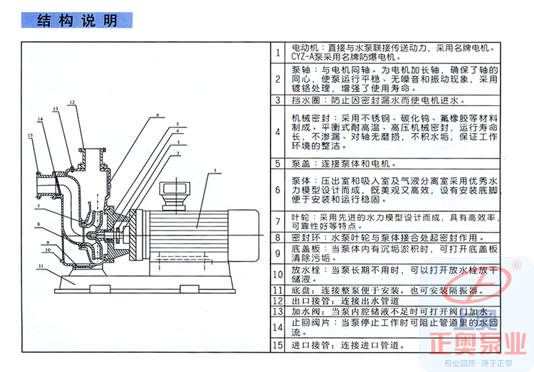 CYZ-A型自吸式離心油泵適用于石油行業(yè)、陸地油庫、油罐車的理想產(chǎn)品,并適合于作船用貨油泵、艙底泵、消防泵和壓載泵及機器冷卻水循環(huán)等,分別輸送汽油、煤油、柴油、航煤等石油產(chǎn)品和海水、清水,介質(zhì)溫度-20℃~140℃,如輸送化工液體可改用耐腐蝕機械密封。