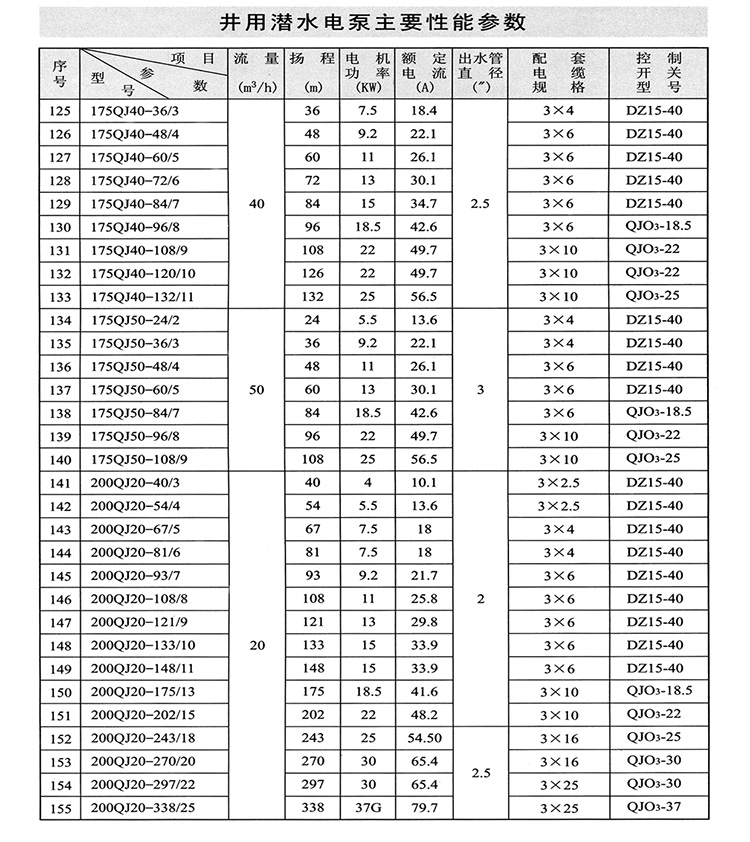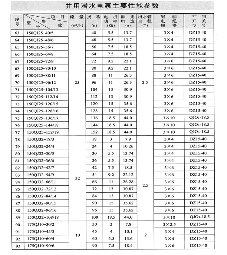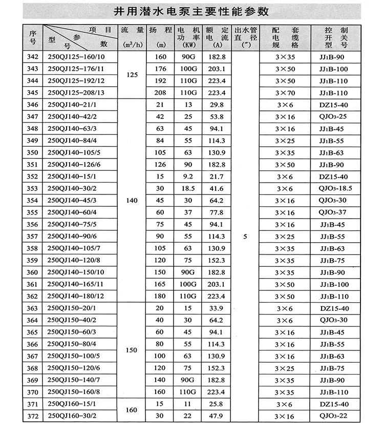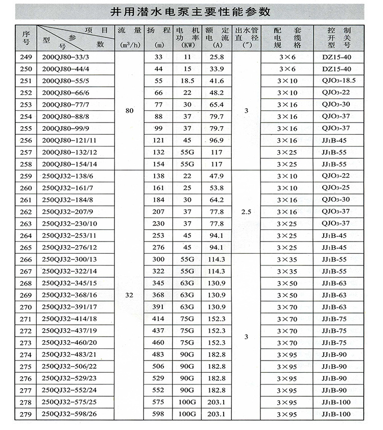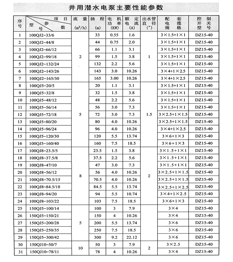 ZAQJ長(zhǎng)軸深井泵、深井長(zhǎng)軸泵性能參數(shù)