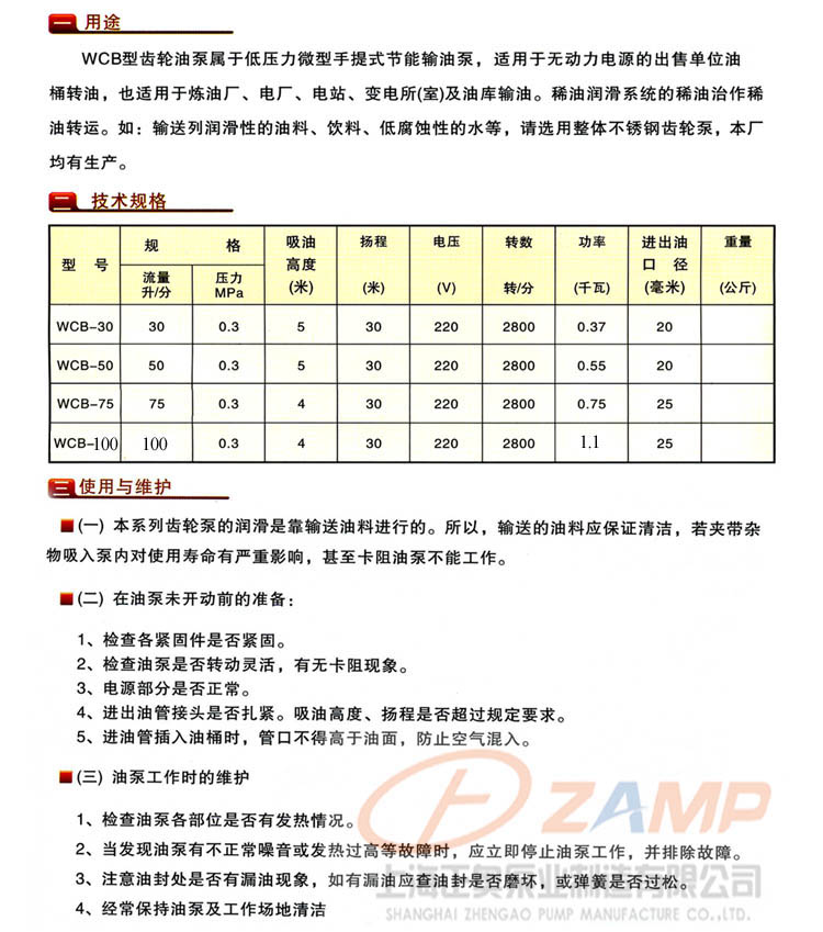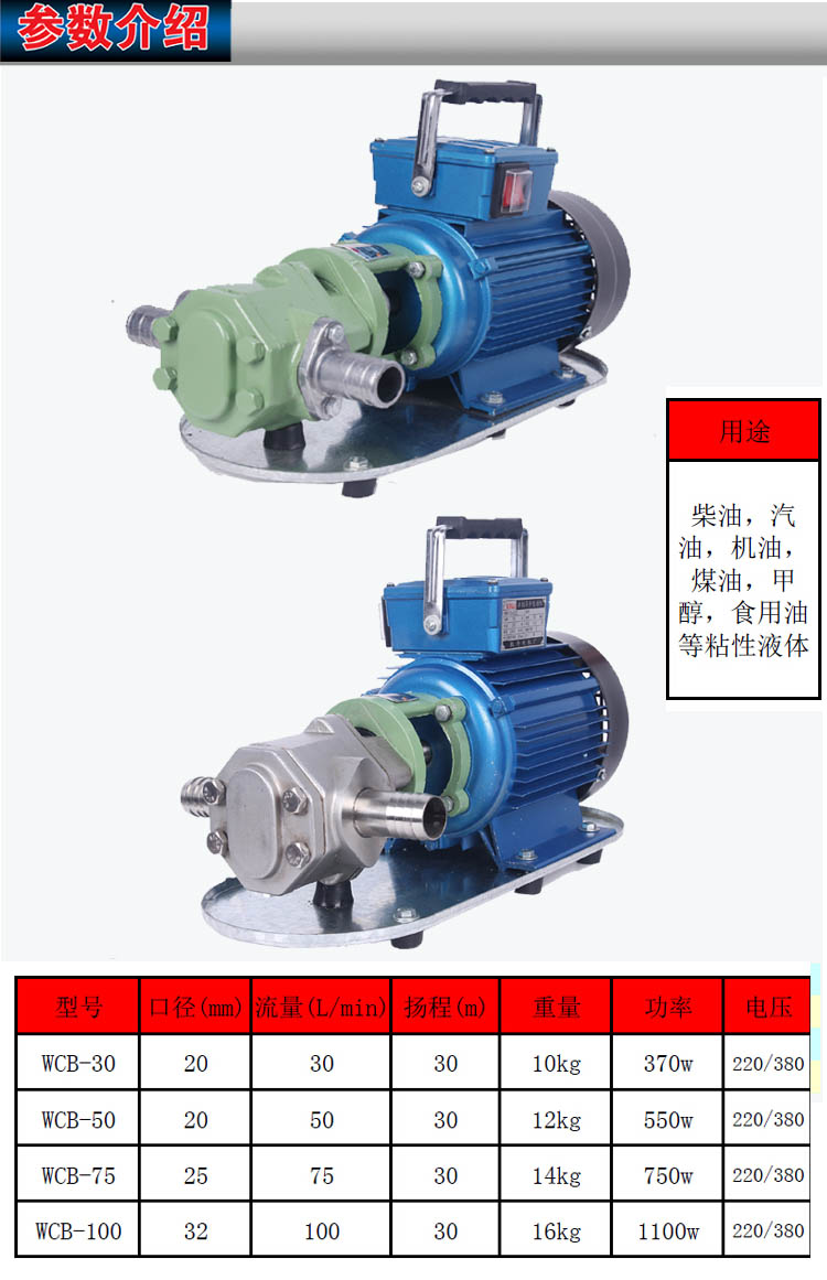 WCB型齒輪油泵屬于低壓力微型手提式輸油泵,適用于無動力電源的出售單位油桶車轉油,也適用于煉油、電、變電所(室)及油庫輸油。稀油潤滑系統(tǒng)的稀油治作稀油轉運。如:輸送無潤滑性的油料、飲料、低腐蝕性的水等,請選用整體不銹鋼齒輪泵,本均有生產。