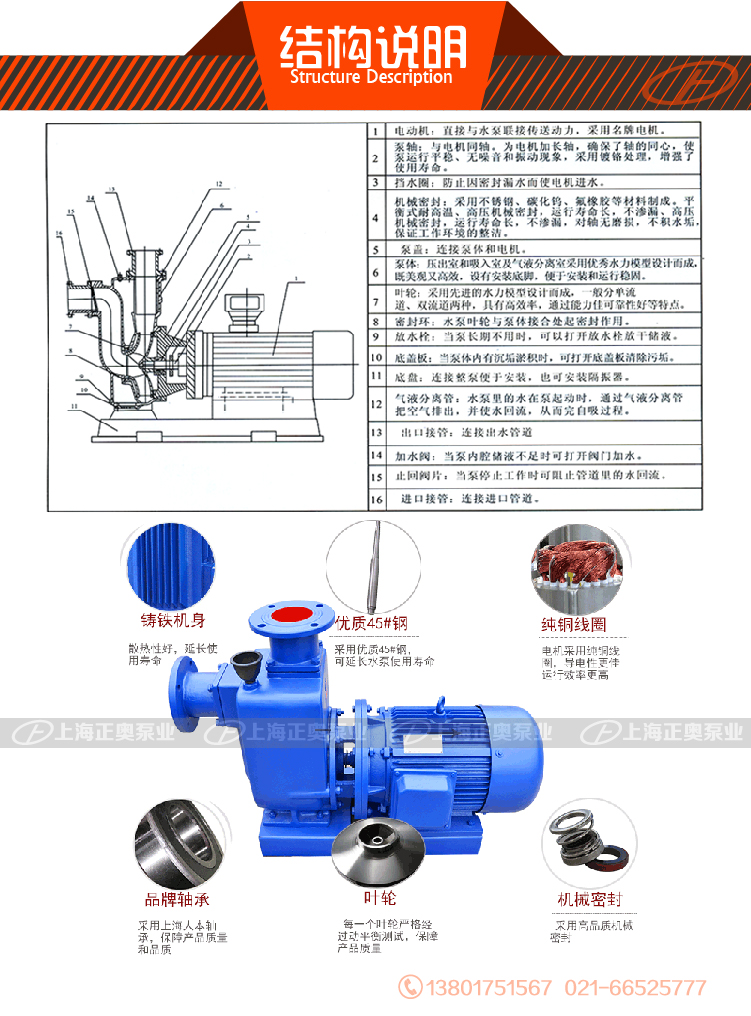 6、結(jié)構(gòu)獨(dú)特、自吸性能好,工作前只需保證泵體內(nèi)儲(chǔ)有定量引液即可。