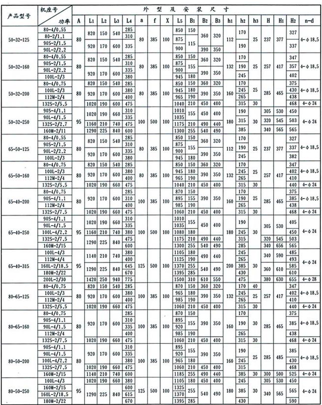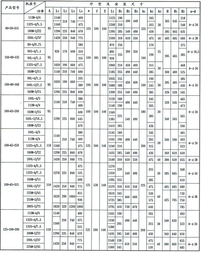 1、泵的安裝是否合理,對(duì)泵的正常運(yùn)行和使用壽命有很重要的影響,所以安裝前必須仔細(xì)校正,不得草率,泵的外形及安裝尺寸,詳見(jiàn)困5和表4。