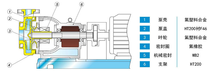 IHF為單級單吸式氟塑料合金化工離心泵,該泵是按照國際標(biāo)準(zhǔn)并結(jié)合非金屬泵的加工工藝設(shè)計(jì)生產(chǎn)。泵體采用金屬外殼內(nèi)襯聚全氟乙丙烯(F46),泵蓋、葉輪和軸套均用金屬嵌件外包氟塑料整體燒結(jié)壓制成型,軸封采用四氟填充材料,進(jìn)出口均采用鑄鋼體加固。