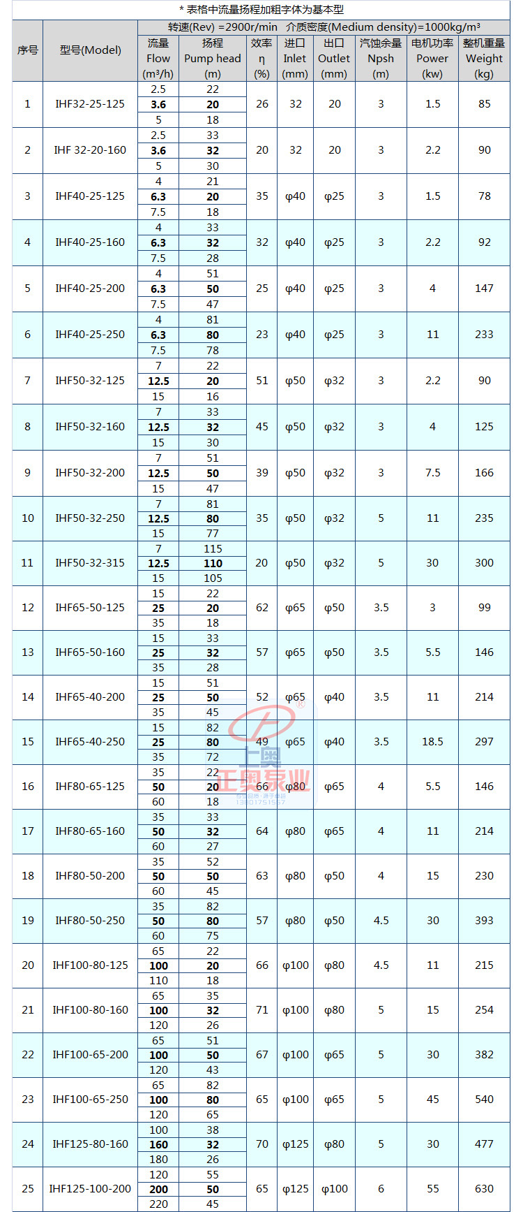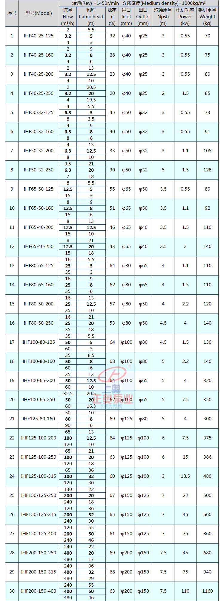 IHF 氟塑料化工離心泵參數(shù)選型: