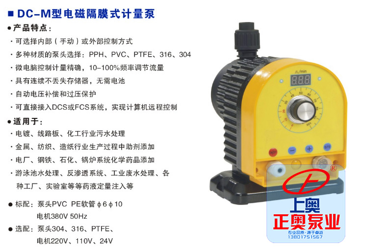 溫馨提示:“DC-M型電磁隔膜式計(jì)量泵”所有文字、數(shù)據(jù)、圖片均只適用于參考。