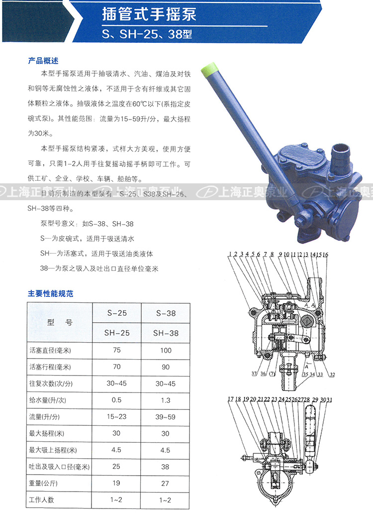 S-25、38插管式手搖泵 SH-25、38插管式手搖泵