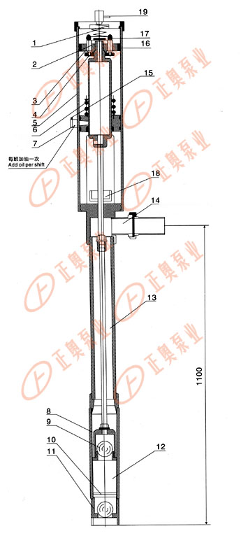 氣動漿料泵產(chǎn)品采用氣壓差的作用,使活塞上下運行,帶動導料活塞開閉,起到提料的作用。 具體裝置如圖(一)所示: 1、缸體 2、進氣閥 3、彈簧 4、彈簧 5、活塞 6、排氣管 7、換氣管 8、密封底座 9、密封上蓋 10、漿料缸體 11、進料口 12、漿料活塞 13、進料鋼球 14、鋼球 15、連桿 16、漿料管 17、出料口 18、加油閥 19、放氣閥