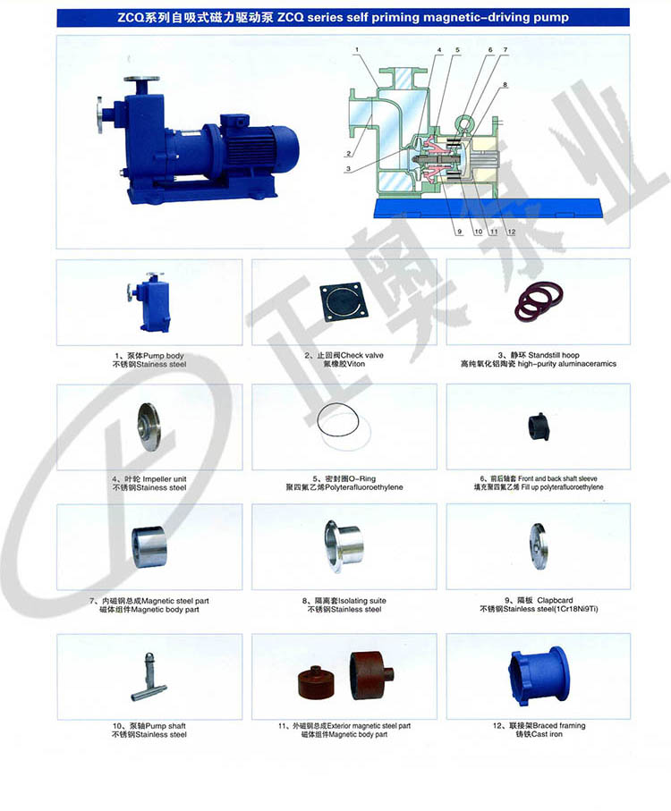 ZCQ系列自吸式磁力泵(以下簡(jiǎn)稱(chēng)自吸泵)是根據(jù)眾用戶(hù)的要求,該泵以靜密封取代動(dòng)密封,使泵的過(guò)流部件處于完全密封狀態(tài),解決了其它泵機(jī)械密封無(wú)法避免的跑、冒、滴、漏之弊病,泵體及過(guò)流部件的材料均采用了耐腐蝕的不銹鋼、鋼玉陶瓷、四氟石器等材料制造,即有CQ型磁力驅(qū)動(dòng)泵的功能,又集自吸于一身,不需底閥和引灌水、自吸高度4米。