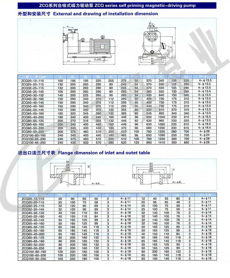 | ZCQ50-32-125 | 145 | 235 | 290 | 330 | 112 | 350 | 80 | 480 | 790 | 180 | 420 | 4-φ13.5 |