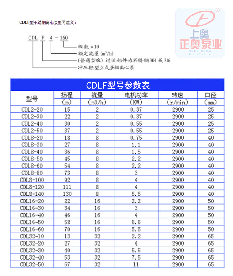 CDLF輕型不銹鋼立式多級泵性能參數(shù):