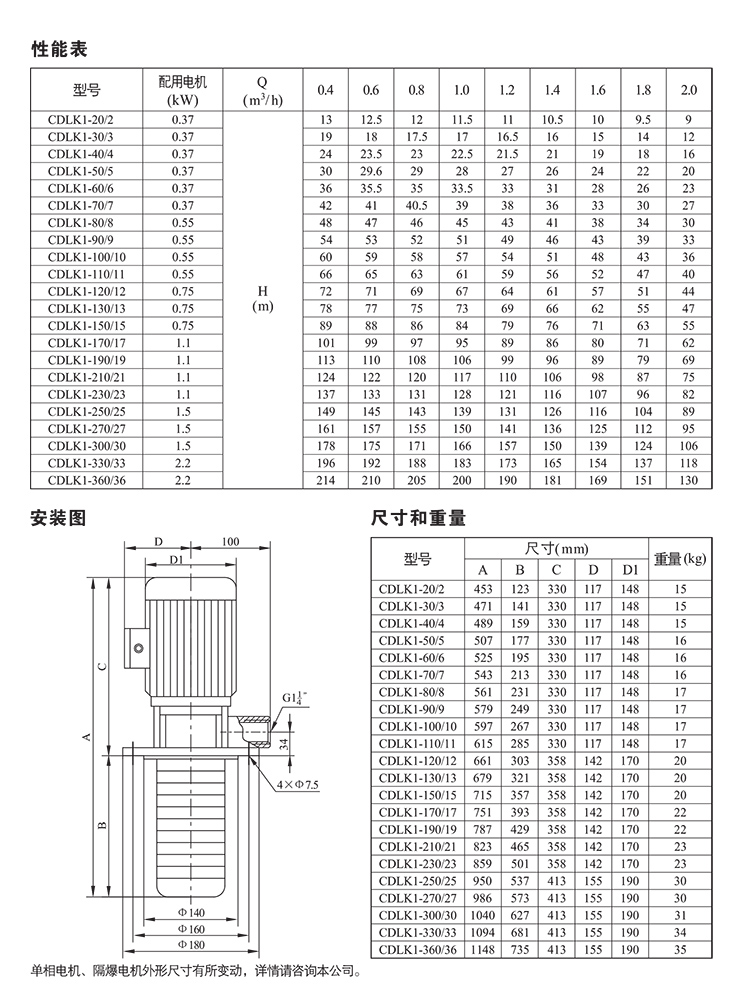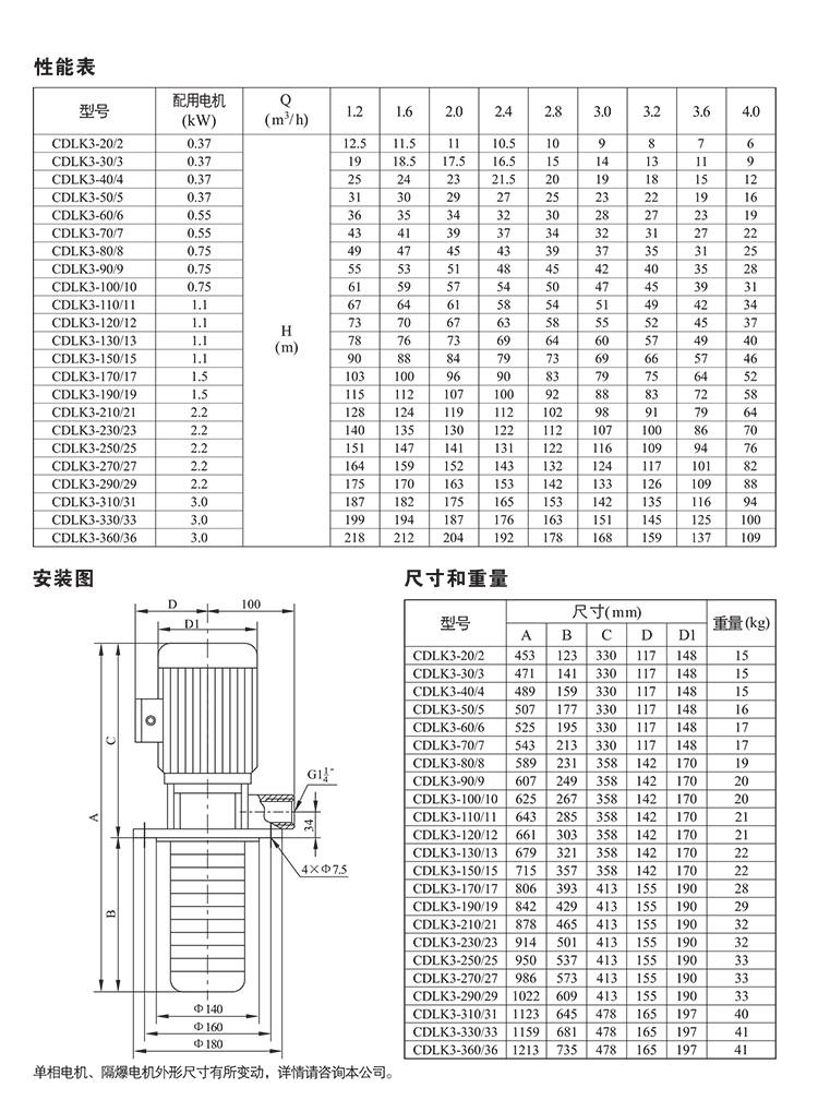 CDLK/CDLKF為安裝標(biāo)準(zhǔn)電機(jī)的自吸立式多級(jí)離心液下泵,電機(jī)軸通過泵頭用聯(lián)軸器直接與泵軸聯(lián)接,泵可根據(jù)需要配置智能保護(hù)器,對(duì)泵干轉(zhuǎn)、缺相、過載等進(jìn)行有效保護(hù)。為滿足水槽或容器的安裝深度,可安裝空腔體來改變泵本身的長(zhǎng)度,不同的級(jí)數(shù)長(zhǎng)度見尺寸和重量表和可供產(chǎn)品范圍表。